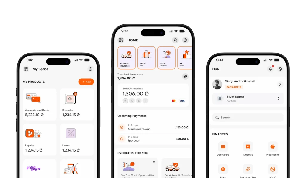 • SOLO Club: Ingresos desde 8,000 GEL, depósito desde 100,000 GEL o préstamo desde 250,000 GEL.